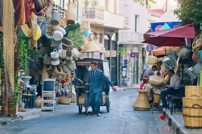本作の主人公ニコスはアテネで36年間、高級スーツの仕立て屋を父と営んできた寡黙な中年男性。しかし、ギリシャを襲った不況の煽りを受けて店は銀行に差し押さえられ、父はショックのあまり倒れてしまいます。崖っぷちに立たされたニコスでしたが、手作りの屋台で「移動式テーラー」を始めることをひらめきます。ニコスは大きな屋台を背負って街に繰り出したものの、やはり路上で高級スーツは売るのは難しく……。途方に暮れるニコスでしたが、あるオファーが舞い込みます。