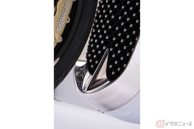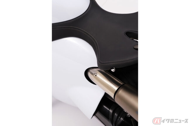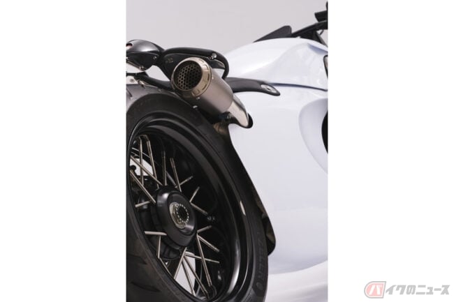 そのほか、Reimaginedではドゥカティ「パニガーレ スーパーレッジェーラ」用を流用したアクラポビッチ製のチタン製マフラーやJonich Wheels製のワイヤースポークのホイールなど現代的なパーツが奢られています。