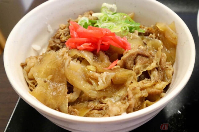 出来上がってきたのは昔ながらのシンプルな見た目。丼の底が見えるほど透明感のあるスープに縮れ麺、具材はチャーシュー、海苔、ナルト、ネギのみ。じつに食べやすく、箸が進みます。しかしあらためて、あっさりしたスープだからこそ食べ応えや噛み応えのある縮れ麺が有効であり、またスープも麺に絡みやすいのだと感じました。ミニ牛丼の方は、少し甘めの味付けです。タレが染みたご飯が美味しさを増しています。
