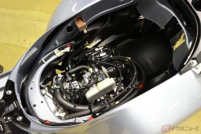 エンジンも素晴らしい。単体での振動が少なく、フリクションロス低減に根ざした開発がされた「HPE(ハイパフォーマンスエンジン)」なのです。実際、スチールモノコックフレームを介して感じる振動は、高周波のビーンとしたものがグリップなどに出るものの、かつてのようにミラーがびびるなどの現象が無かったのは驚きました。