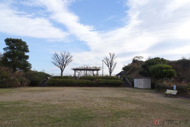 今回訪れたのは、艦艇を上から見下ろせるという、少しマニアックな場所「安針台公園」です。位置的には京浜急行電鉄の「安針塚駅」から国道16号を越えて海方面へ向かった高台にある公園です。公園の入り口から中を見ると、そこそこの大きさの広場とカラフルな滑り台のある、ごく一般的な公園に思えます。