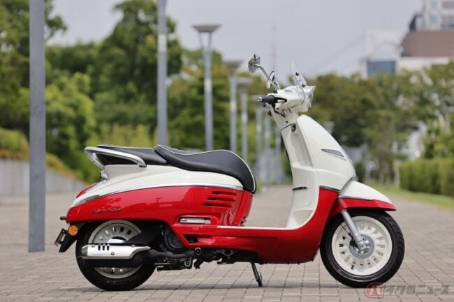 今、プジョーは創業から210年を記念して、記念ロゴ入りのジャンゴを10月に限定車50台のみの販売で日本に迎える予定なんだとか。形は昔の面影を残したようなネオレトロなスクーター。パールホワイトカラーがまた気品あふれている。このカラーも人気色だから、車体全体に施しているジャンゴは速攻売り切れそうだなぁ。