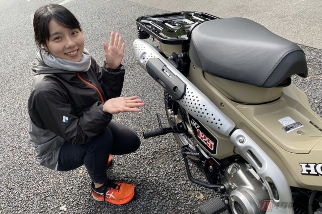 皆さんこんにちは、小野木里奈です。本日は、ホンダ「CT125・ハンターカブ」の試乗記でございます。実は、去年の秋にも乗らせていただいたハンターカブ。なので、ちょうど1年前くらいですね。前回よりもガッツリ乗り回させていたただきました。それでは、スタート!