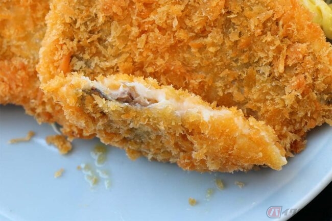 冷めないうちに揚げたてのアジフライをいただきます。一口食べてビックリ、アジフライのお手本のような歯応えと美味しさです。サクサクの衣は厚過ぎず薄過ぎず、身は濃厚な味でほど良い柔らかさ、自家製のタルタルソースも相性バッチリです。