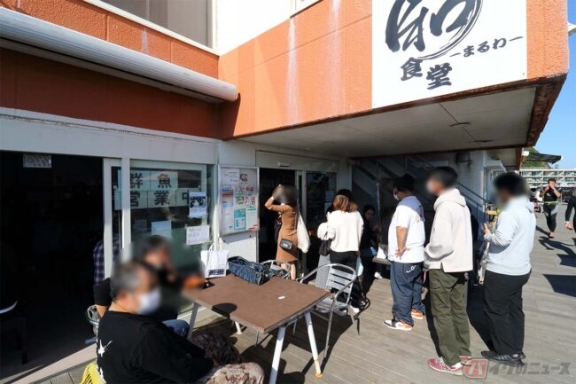 SNSで見知った方などと話を交わし、参加車両を見ているうちに気が付いたらお昼時。ちょうど友人も来たところで昼食にしようと施設内に店を構える魚料理の「まるわ食堂」に入りました。
