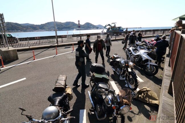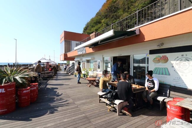 食後も「まるわ食堂」の隣のライダースカフェ「808Cafe 10R(ヤオヤカフェ・テンアール)」の自家製ジンジャーエールを飲みながら、また旧車ミーティングでまったり……。逗子海岸で季節外れの小春日和な光景とミーティングを満喫し、暗くなる前に帰路につきました。