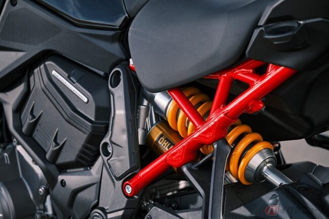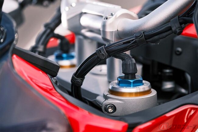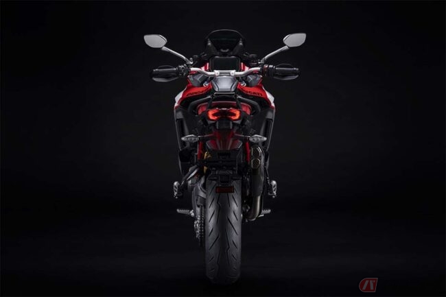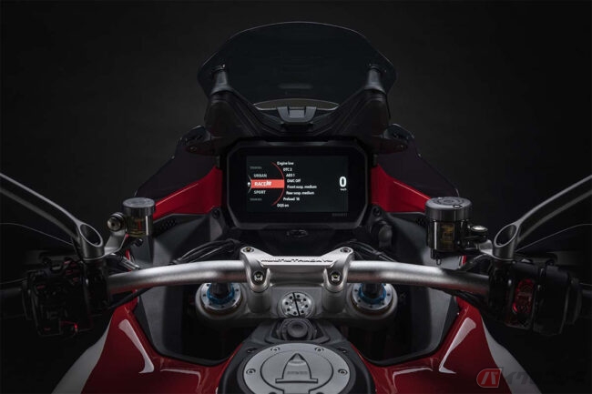 オーリンズ製電子制御式サスペンション含む最新世代の高度なエレクトロニクス・パッケージを「ムルティストラーダV4 S」から受け継ぎ、アダプティブ・クルーズ・コントロール(ACC)とブラインド・スポット検知(BSD)機能を統合した、前方用および後方用レーダーが標準装備されています。