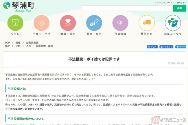 同様に、神奈川県横浜市でも「ポイ捨て・喫煙禁止条例」を制定しており、歩きタバコや吸い殻のポイ捨てを禁止し、違反した場合は2万以下の罰金を科す場合があります。その他にも、鳥取県琴浦町や宮崎県延岡市などの地域では、タバコのポイ捨てを「不法投棄」とみなし、山林や空き地、海岸でタバコのポイ捨てを禁止しています。