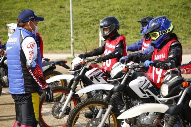 約10人の生徒に対して、ほぼ同数のインストラクターさんがついてくれるので、1人だけ置いてけぼり…なんて心配もありません。オフロードが初めての参加者が多いですが、それでも人それぞれ得意不得意があるのは当たり前。「参加したいけど、足手まといになるかも…」なんて思っている方は心配ご無用。インストラクターさんが個々にきちんとフォローやアドバイスもしてくれます。
