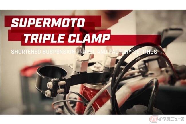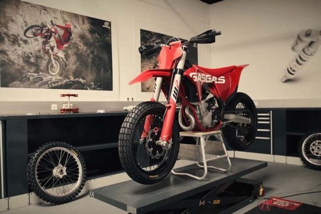 GASGASテクニカルアクセサリーのみを装着し(アクラポビッチ・エボリューションライン・エキゾーストシステムを除く)、このビデオを見て自分もフラットトラックレーサーを作ってみたい、と思うライダーが現れることを期待すると言います。