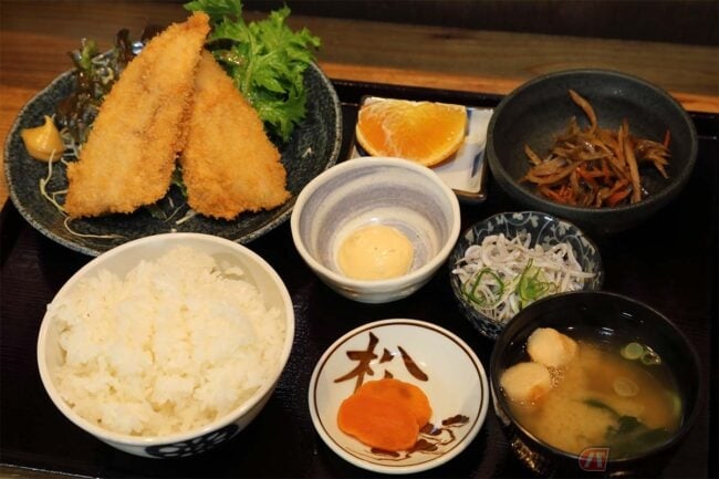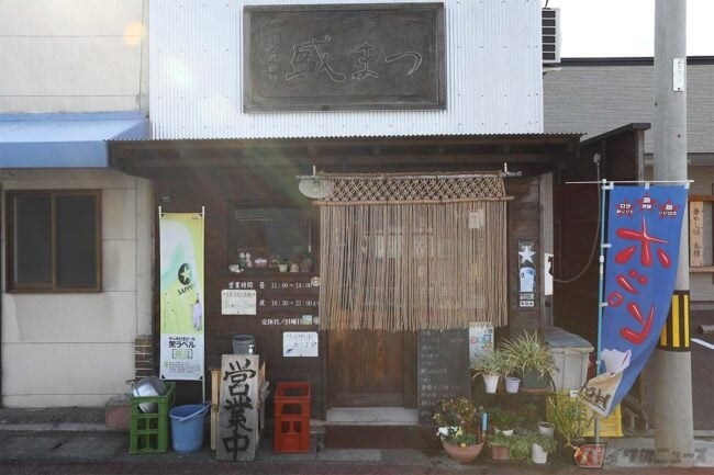 アジと言えばアジフライ! というライダーのために、美味しいアジフライを味わえるお店を紹介します。愛媛県松山市、伊予北条駅近くの「盛まつ」を訪れました。