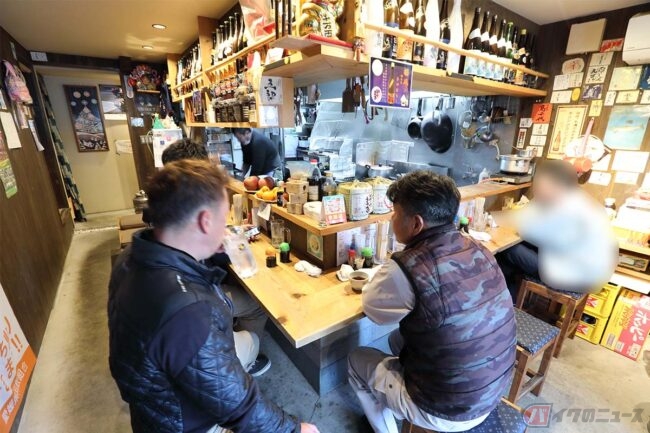 さて、海を後にTさんが紹介してくれたお店に向かいます。5分ほどで到着したお店は、「伊予北条」駅のすぐ近くにある「盛まつ」です。ご主人はスズキ「Vストローム650」の納車待ちで、奥様はハーレー・ダビッドソン「FXDX」に乗っているというご夫婦揃ってのライダーです。