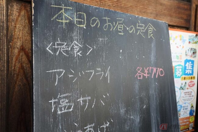 こちらのお店では、行商のおばちゃんから魚を買い付けることが多く、朝獲れの魚を食べられるそうです。いよいよアジフライが楽しみです。