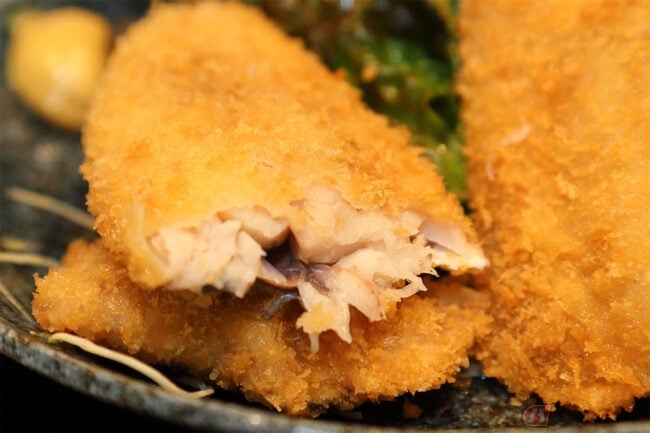 早速アジフライをいただきます。衣は薄めですが揚げ具合も良く、サクサク食感です。身はフワッと柔らかく濃厚な味。美味しいです。海が穏やかな瀬戸内のアジは、東京湾や相模湾と同じように柔らかいのでしょうか。