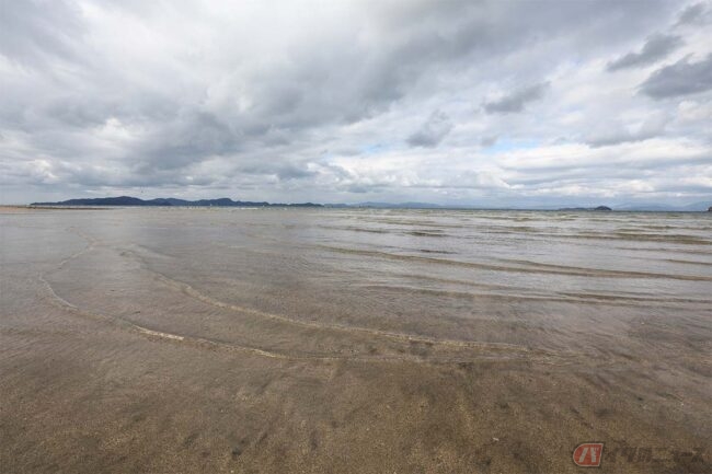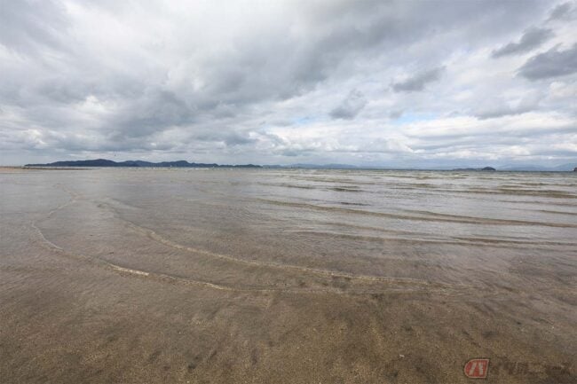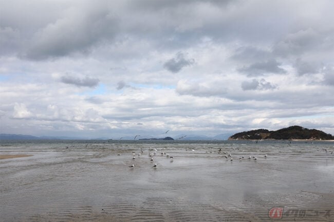 そんなコミカルな呼び名からは想像できないほど綺麗なビーチにビックリしました。潮が引いた晴れて波が穏やかな日は、青空や雲が映り込んでとても美しいそうです。ちょうど干潮の時間だったのですが、残念ながら波があって綺麗な映り込みは見られませんでした。それでも十分綺麗な景色に満足です。近くには「道の駅 風早の郷 風和里」があり、休日にはライダーが集まるそうです。ここからも瀬戸内の綺麗な景色が望めるので、ツーリングの休憩ポイントにはぴったりです。