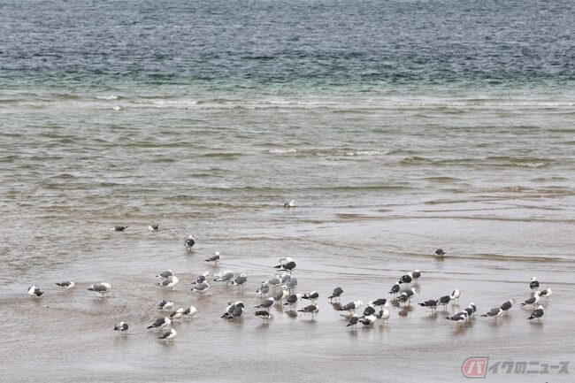 開店にはまだ時間があるので周辺を走ります。Tさんからここは行った方が良いと言われたのは“モンチッチ海岸”です。なんでモンチッチ? と聞き返してしまう名称ですが、正式には「立岩海水浴場」というようです。しかしなぜか地元の人はモンチッチ海岸と呼ぶそうです。Tさんもどうしてモンチッチなのかは知らないとのこと。
