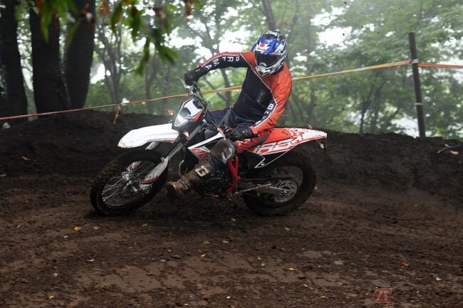 フラットダートでは遊びの天才か! と言うほどアクションが決まるクロストレーナー250LD。思い切ってドロ沼的になったコースも走ってきました。
