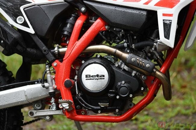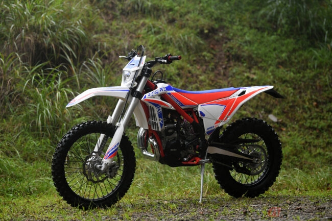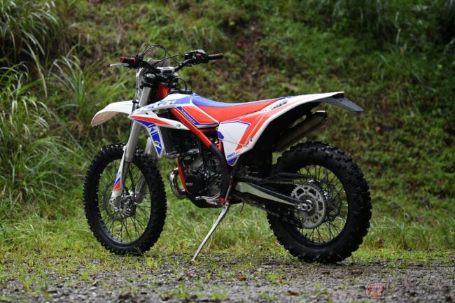 輸入元、BETAジャパンの門永さんによれば、国内の難所の多い本格的なエンデューロレースにも、RR 2Tシリーズではなくなこのクロストレーナー250を選んで参加するライダーも少なくない人気モデルだそうです。