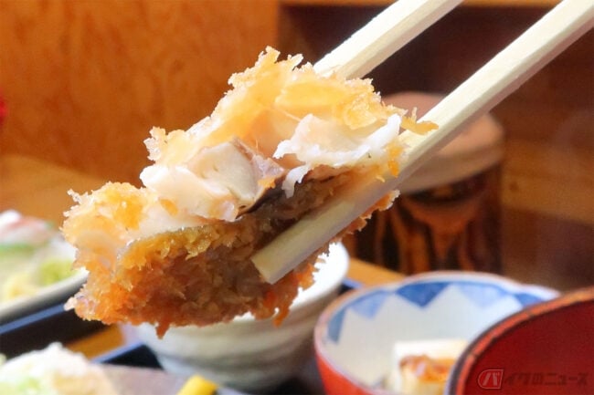 期待いっぱいでアジフライに箸を入れます。サクっと小気味良い音の揚げ具合、そして噛んだ瞬間に漁港直送の新鮮な魚ならではの濃厚な味が広がります。しかも身は溶けそうなくらいフワフワ。美味い! 美味すぎる! “アジフライ旅”史上、一、二を争うほどの美味さです。あっという間に1尾を食べ終わってしまいます。