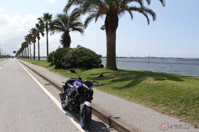 「MT-25」と同じ車体をトルクのあるエンジンで走らせるだけに、上りが多い区間ではアクセルを微増するだけで速度維持もラクラク。高めのギアでアクセルを開け、力を出した結果、より良好な値になった可能性もあります。また、3区間中もっともワインディングが楽しい最終区間では、前走車も無く移動速度が保てた関係で、アップダウンをほどよいトルクバンドで走れたせいか、燃費が向上するという体験をしました。