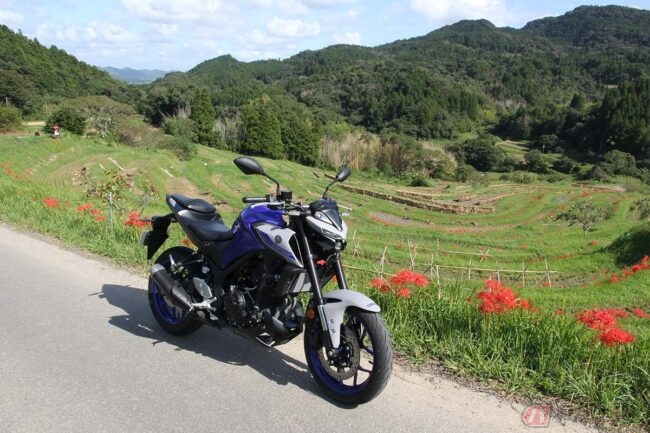 ヤマハ「MT-03」は、250ccクラスの「MT-25」とほぼ共通の車体構成で排気量320ccの直列2気筒エンジンを搭載しています。燃費性能を実際に走って計測しました。