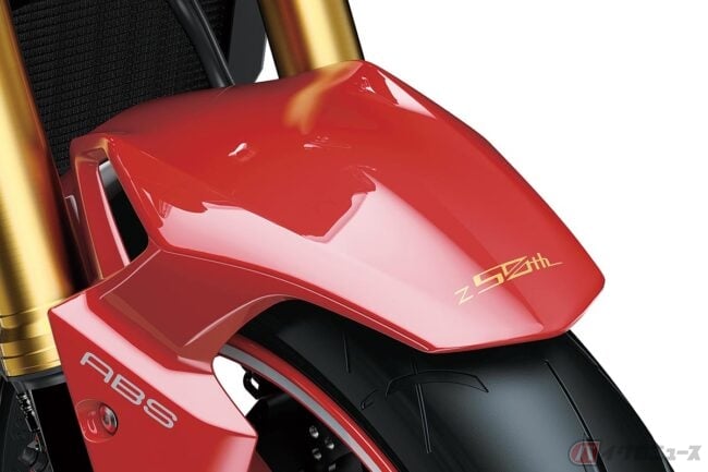 Zシリーズ誕生50周年を記念したモデルとなるZ900 50th Anniversaryでは、排気量948ccの4気筒エンジンや基本的なパッケージはそのままに、空冷Zの頂点モデルとして君臨したZ1100GP(1981年)をはじめ、Z400GP(1982年)などにも採用された、1980年代のZを代表するカラー「ファイヤークラッカーレッド」の外装色を採用。