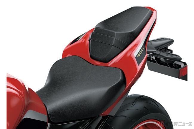 併せてフェンダーに印されたZ50周年ロゴとシュラウドにあしらわれたレタリング、車体色を引き立てる艶ありブラックのフレーム塗装、高級感を演出するゴールドカラーのフロントフォーク、上質感を高めるシボ(シワ加工)入りの専用シート表皮など専用の処理や装備がおごられています。