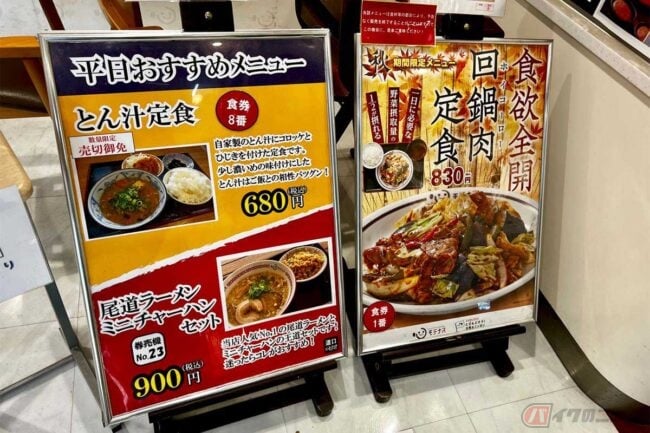 ここのフードコートには、ほかにも「牛バラ焼肉定食」(900円)や数量限定の「とん汁(単品)」(380円)などもありました。とん汁は人気メニューらしく、数量限定とあるので好きな方は即決が吉ではないでしょうか。「尾道ラーメン定食」(900円)や「尾道ラーメンミニカレーセット」(900円)といった「尾道ラーメン」中心のメニューも発見できました。