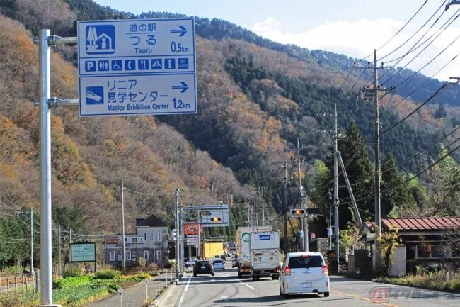 リニアモーターカーとは、超電導磁石の磁力によって浮上走行する次世代の高速鉄道です。今回訪れた「山梨県立リニア見学センター」は、山梨リニア実験線の走行試験の開始に合わせて開館した博物館型見学施設です。山梨県都留市にあり、東京方面からバイクで向かうなら、中央自動車道を「大月IC」で降り、国道139号を富士吉田方面に向かえば「道の駅つる入口」交差点に案内看板が現れるので、右折して数分で到着します。