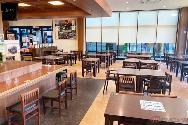 2輪車専用の駐車スペースにバイクを停め、地面に降り立った瞬間、走っている時はすっかり忘れていた空腹感がいきなりピークに達します。新東名のSAやPAはどこも新しく綺麗ですが、レストランや食堂がフードコート化していて筆者的にはあまり魅力を感じません。SAの大きなレストランより、PAにあるトラックドライバーがドンブリで白飯かき込んでいるような(イメージの)昔ながらの食堂が好きなのです。