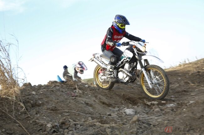 これまでのレッスンではリーンアウトの習得を目的として、オフロードでのアクセルやブレーキ、クラッチ操作、体のバランスなどを勉強してきました。それぞれ段階ごとにしっかりレッスンしてきまして、今度は習った技術を応用し、実際にオフロードのコースを走行していきます。