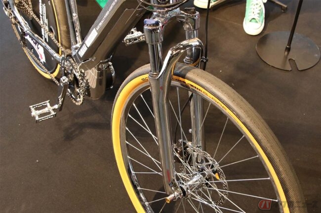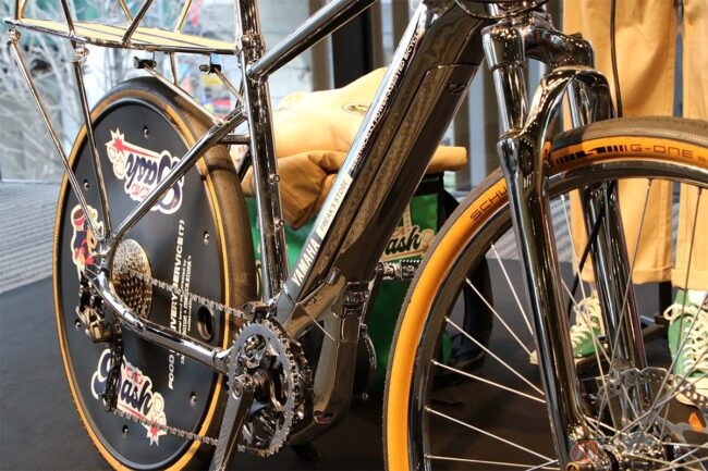 全身にクロームメッキ加工が施され、ハンドルは昔ながらの配達用自転車を彷彿とさせる形状に換装、大きなリアキャリアを装備し、リアにはホイールディスクが装備されています。