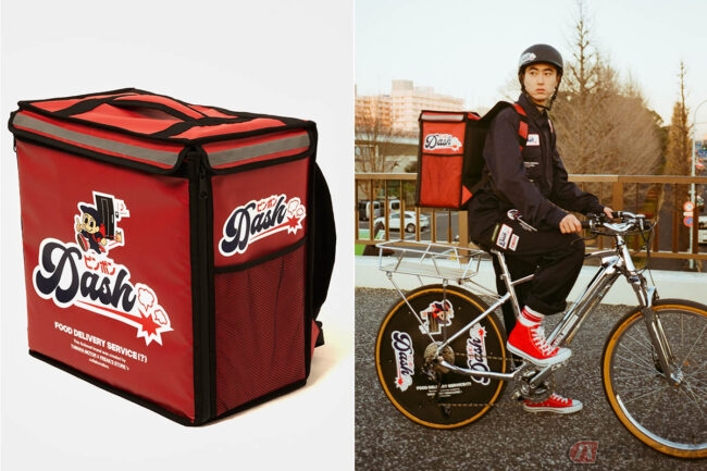 また「フードデリバリー」コンセプトは車体のみならず、架空のフードデリバリー会社、その名も「PINPON DASH(ピンポンダッシュ)」まで設立(?)し、スタッフが身に着けるユニフォームや、デリバリーバッグまで製作されました。
