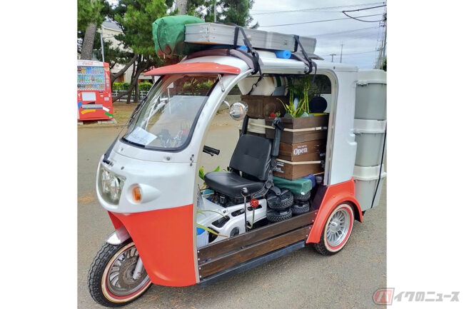 テールには車のトラックのマーカーランプを装着し、安全に荷物を運べるように工夫しながら市販品とDIYをうまくマッチさせ、唯一無二のAPtrikes125に仕上げました。車やバイクを知らなくても、三輪であるというより前に、「かわいい!」と誰もが歓声をあげてしまうルックスですが、家族や周りの人、そしてイベント出店時の反応はいかがでしょうか?