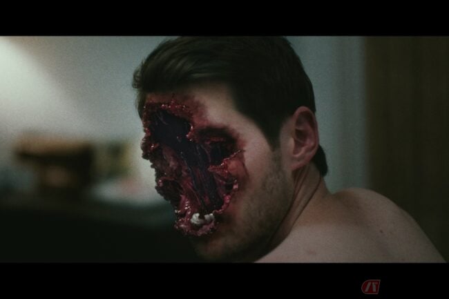 「実話に基づく物語」と謳う本作に疑問を抱かずに観ていると、いかにも凶暴そうなモンスターの登場に面食らってしまうことでしょう。さらに、まるでゾンビ映画のように顔面を欠損した人間まで現れます。実話ベースだと思ったのに、いったい何を見せられているのか……と、軽くパニックに陥るかもしれませんが、本作は正真正銘、ホワイト監督の実体験をもとに描かれた物語です。