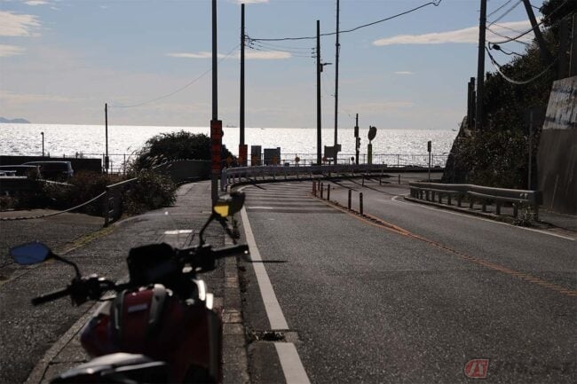DCTはエンストしない、というのもツーリングでは大きなメリットです。筆者(野岸“ねぎ”泰之)は三浦半島に来ると、旅心をくすぐるシーンを求めてつい細い路地や畑の中の道を走りたくなります。そうすると、細い坂の途中や畑のあぜ道でUターンすることもよくあり、大型のMT車では半クラッチがうまく使えずにエンストしてマシンを倒してしまう、なんてリスクが伴います。DCTならそんな心配をせずに済むので、気軽に探索できる範囲がグッと広がるのです。