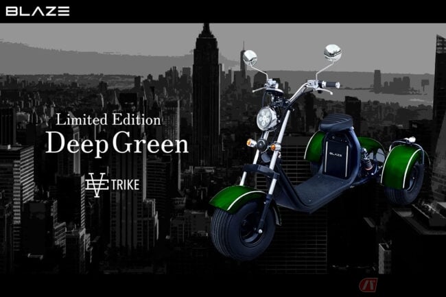 様々な電動モビリティを手掛けるブレイズは、普通自動車免許で乗れる3輪車「EV TRIKE(イー・ブイ・トライク)」の特別仕様車を10台限定で発売します。特別仕様車では既存モデルにはない特別色「ディープグリーン」が採用されています。