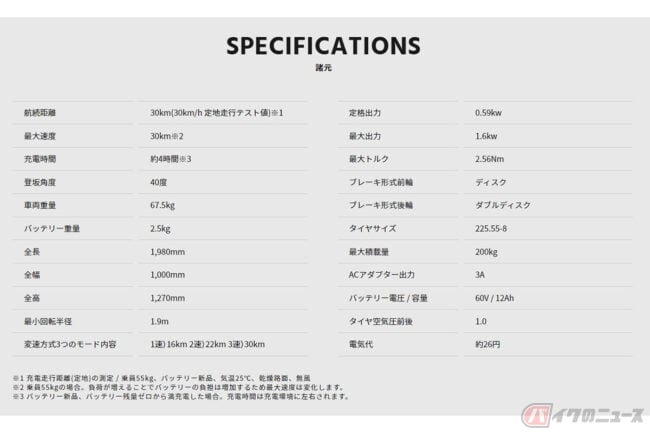 一充電あたり約65円で走行可能なEVトライクの特別仕様車の価格(消費税10%込)は25万6080円で納期は2022年1月予定となっています。