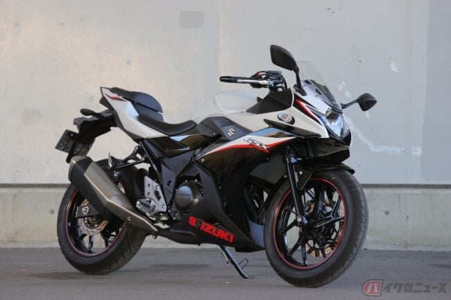 ふたつ目の車種は、スポーティーなフルカウルや攻撃的なフロントデザインなどがスズキスピリットを感じさせる、スズキ「GSX250R ABS」です。