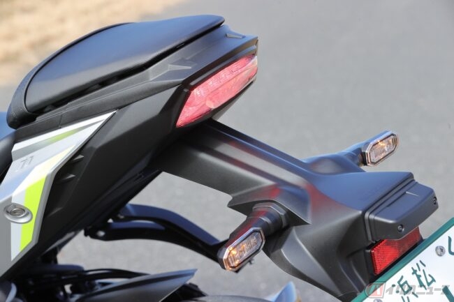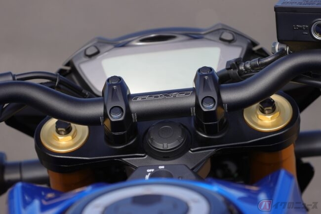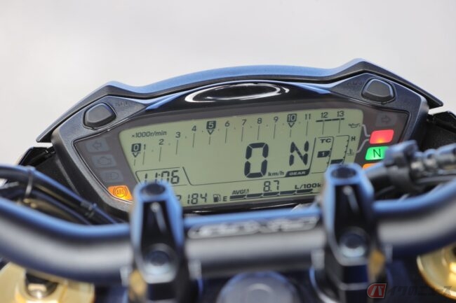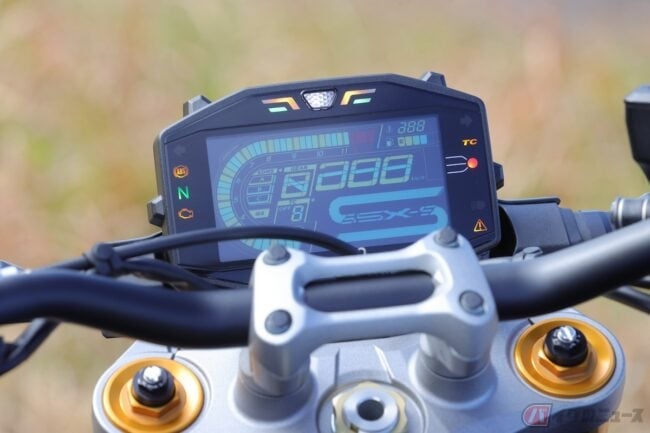 発進時の回転の落ち込みを緩和する「ローRPMアシスト」や、エンジン始動ボタンを押すと一定時間スターターモーターを回転させる「スズキイージースタートシステム」をはじめ、3段階の「トラクション・コントロール・システム」も搭載。『GSX-S1000』のトラコンは5段階あるものの、電子制御も遜色のない内容と言っていいでしょう。