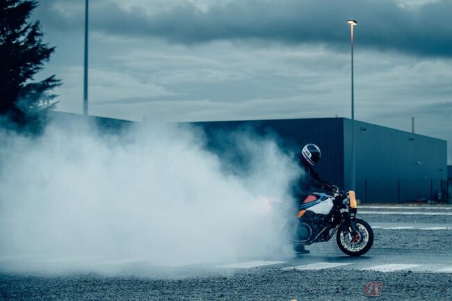 インディアンモーターサイクルがラインナップするFTRシリーズは、オーバルコースを周回するフラットトラックレースで活躍する競技車両「FTR750」のイメージを踏襲したモデルで、最高出力123hp、最大トルク120Nmを発揮する1203ccの水冷Vツインエンジンを搭載する大型ネイキッドモデルです。
