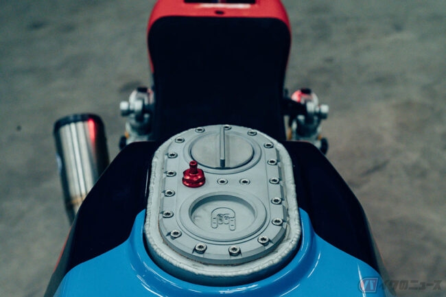様々なエッセンスを盛り込んだ、FTR AMAでは製作時にFTRのシャーシを3Dスキャンし、それをもとに外装類などをCAD(コンピューター)で設計。フロントプレートやシートパン、テールライト、バッテリー(これは耐久二輪にちなんで後方に移動させた)を保持するなどはモジュールなど、ボディパーツを3Dプリントしカーボンファイバーで補強しています。