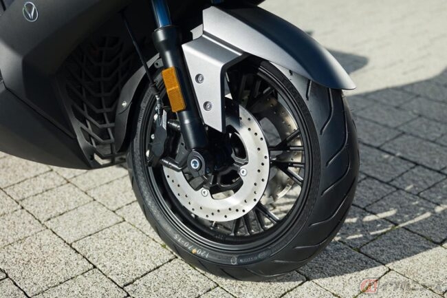 また、高速走行時の安定性とコントロール性を最大限に高めるため、気流を導くエアロダイナミクスラインを備えたウインドスクリーンとフェアリングを採用。各ホイールの制動圧を調整し、制動距離を短縮する効率的なブレーキ技術であるCBSブレーキも採用されています。