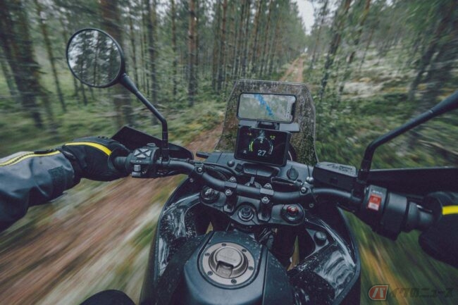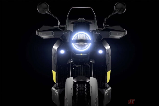 他メーカーのアドベンチャーモデル同様、旅に必要な荷物とともに長距離を快適に移動し、舗装路のみならずオフロードも走破する、といったコンセプトに基づき、走破性能はもとより、スリムな形状のフロントカウルと一体化した大径丸型LEDヘッドライト、カウルの内側に装備されたフォグランプなど、独特の車体デザインは、やはり“ハスクバーナらしい”個性的なものとなっています。