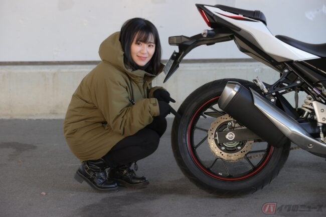 ついこの間も夢に出てきたんだよね。青いボディに白のSUZUKIロゴが”ババンっ!”と映えた特徴的なデザインのGSX250R。SNSでも目を引く特徴的なデザインだっただけにそのルックが印象的で、ずっと乗ってみたかったの!