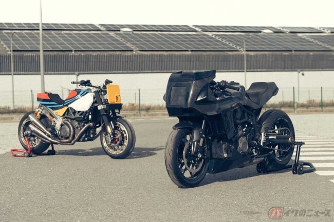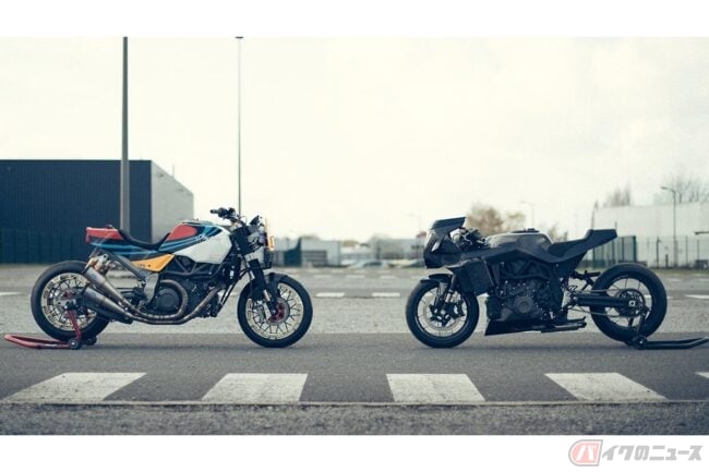 最新のカスタムバイクであるBlack Swan は、2022年2月に公開されたカスタム「FTR AMA」と同じく、ベルギーのWorkhorse Speed Shopが手掛けた一台で、90年代のスーパーバイク、現代のレース用バイク、そして日本のショップ「RAUH-Welt BEGRIFF」が手掛けるチューニングポルシェなど、様々な方向や時代のスタイルからインスピレーションを受けて製作されたものです。