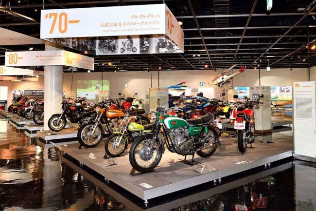 YZ125の技術者インタビューを行なったのは、本社に隣接したコミュニケーションプラザです。ここでは往年のモトクロッサーを含めて、膨大な数の展示車が並ぶ館内をじっくり見学することができます。