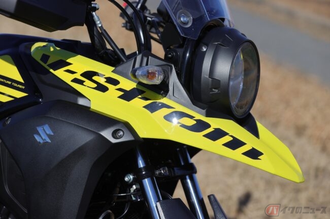 鳥のくちばしを連想させるフロントカウルは、DR-BIGから続くスズキ伝統のスタイリングイメージを継承するとともに、ライダーの冒険心を高めてくれます。