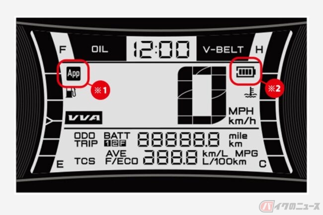 メインスイッチをONにして、ちゃんと成功しているか確認。なるほど!メーターの左上にApp(アプリ)のマークが表示され、右上にはご丁寧に携帯のバッテリー残量まで連動していてありがたい。そして、一回携帯とNMAXくんのペアリングが完了すると、次回以降はワイヤレスイヤホンなどど同じで、アプリを起動したら自動的につないでくれるみたい。