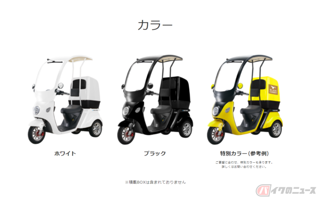 運転席と荷台が分かれるタイプのスイング機構により安定した走行が可能なEV DELIVERYの原付モデルの価格(消費税 10%込)は54万7800円からとなっています。